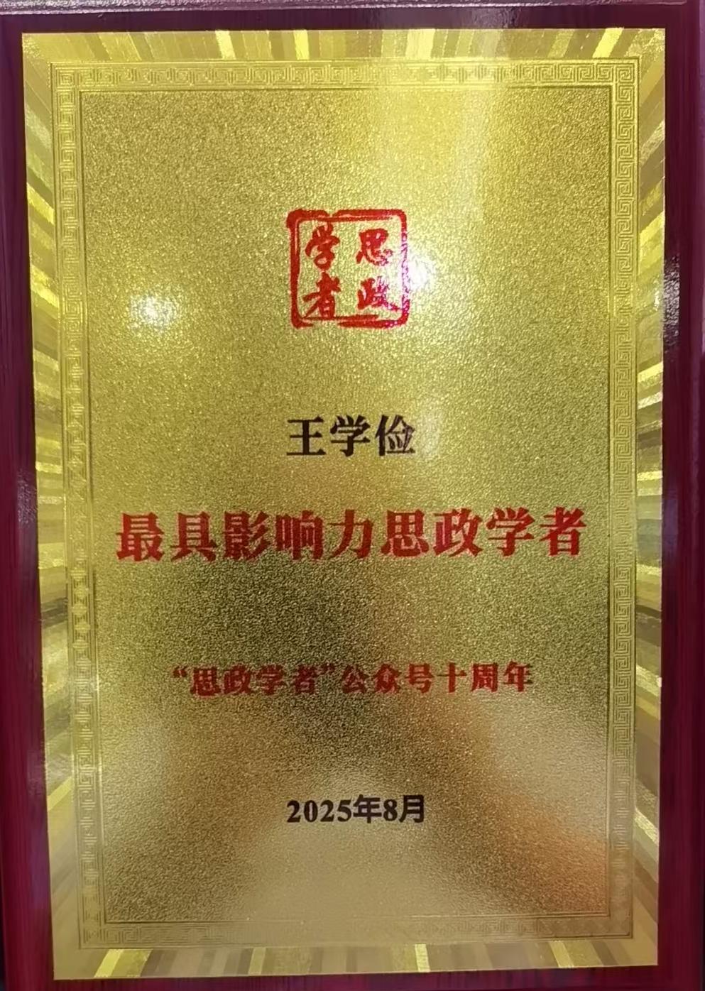 据悉,2025年正值“思政学者”公众号上线运营十周年。本次论坛举办,是为深入学习贯彻党的二十大和二十届三中全会精神,深入学习贯彻习近平新时代中国特色社会主义思想,进一步全面深化改革、推进中国式现代化,更好地研究阐释马克思主义中国化时代化理论创新成果,深化对中国式现代化的理论研究和实践探索,进一步深化教育强国建设中提升思政引领力的理论与实践研究。根据十年来“思政学者”公众号的文章推送情况,论坛共评选出20位“十年最具影响力思政学者”,我院王学俭教授获评此殊荣,并作为获奖代表接受大会颁发的“十周年最具影响力思政学者”荣誉证书。